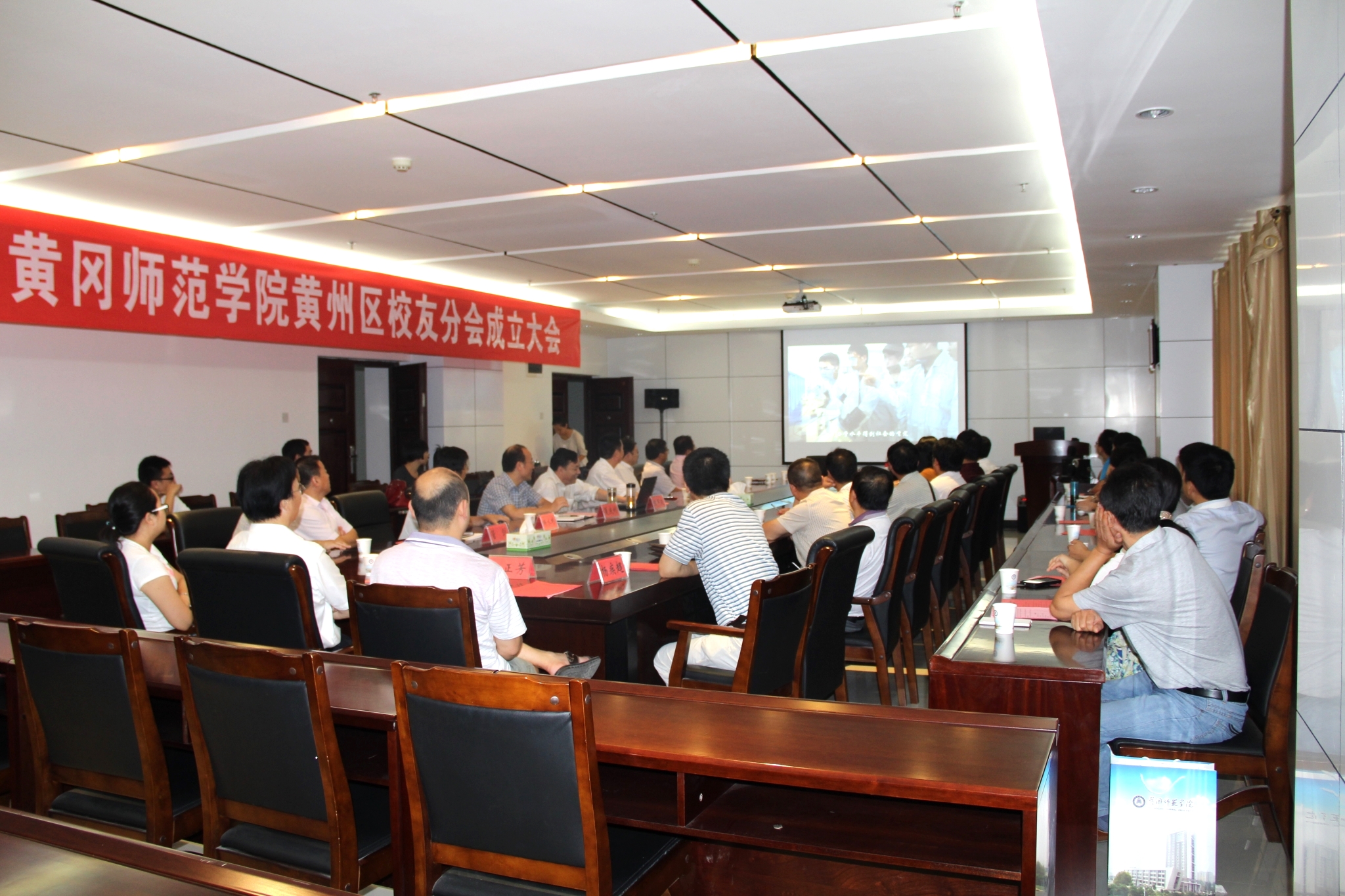 会议组织了黄州区员工分会员工代表观看百年黄师110周年校庆宣传片并参观了校史馆。