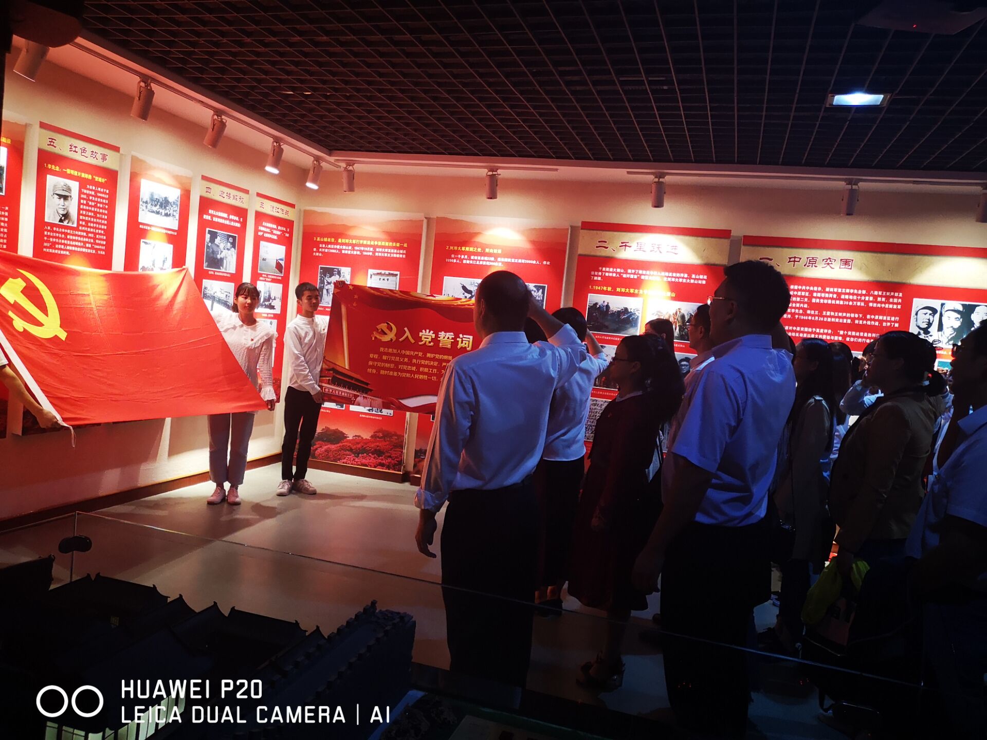 参观结束后,在红馆中,全体党员面向党旗,重温入党誓词。坚定“不忘初心、牢记使命”的政治信念。参观结束后,全体党员集中观看《本色》专题片和张富清同志先进个人事迹,集中学习“不忘初心、牢记使命”相关重要学习内容。