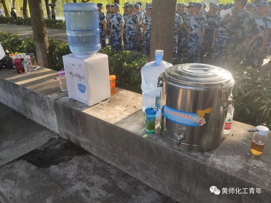 军训现场,我公司员工会成员依然在为了新生们军训时的需要尽心竭力——他们准备好了红糖和葡萄糖、准备好了藿香正气水、还准备了饮用水和茶。让我们感谢各位员工会成员的付出!