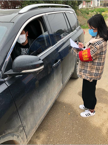 在参加防疫工作的这段时间里,我平时的任务主要是执守站岗,拦截出入人员,并对出入人员做好详细登记。在设卡路口同其他志愿者一起对所有出入人员进行体温测量,并对车辆进行消毒。同时每天打电话询问村民家中是否有发热等症状的成员。本着安全的原则,真正做到“护人即护己”。