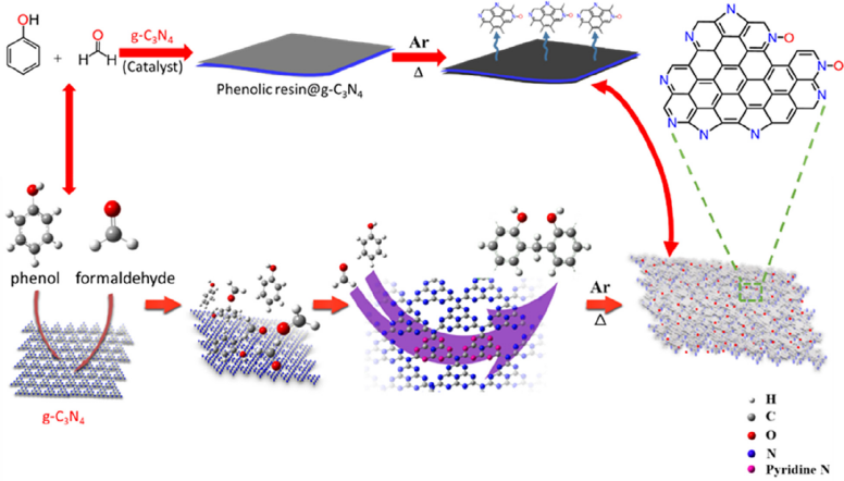 图2高含量全电活性氮掺杂多孔炭设计制备示意图。