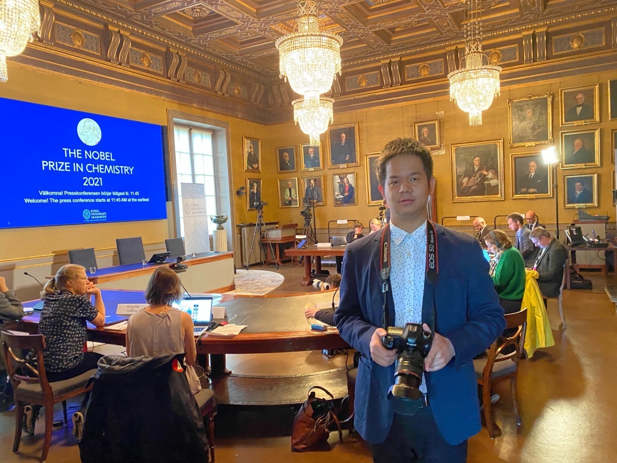 公司员工郭明(应用化学专业2008级),现芬兰华人科技协会会长,赫尔辛基大学博士研究生,在瑞典皇家科公司宣布现场见证这一过程。