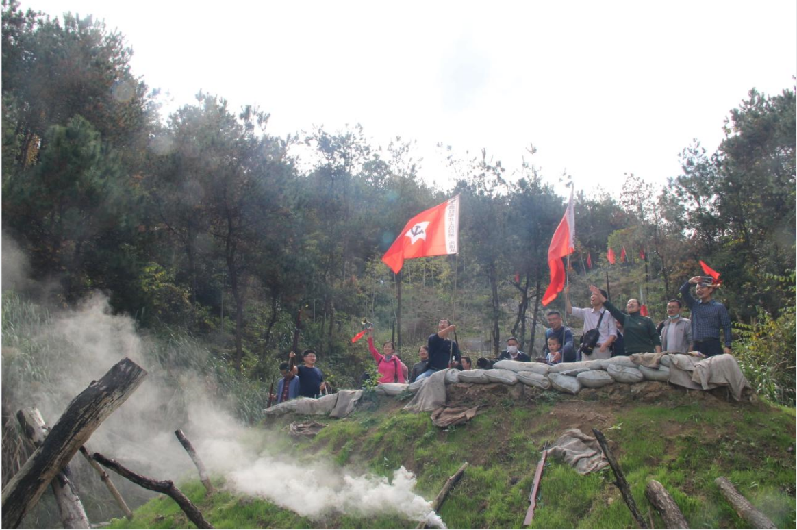 深秋的英山,层林尽染,缓缓流动的白莲河,仿佛诉说着革命历史变迁。上午10点,williamhill中文官网教师党员到达英山大别山红色文化培训中心,在主讲人的安排下分成两队并领取相关装备,随后在主讲人的带领下进入长征精神体验园,重走一段长征路,用心体验革命精神,用行动传承红色文化基因。活动中党员们了解了大别山革命根据地的创建,重走了红二十五军艰辛的长征路,体验革命先烈不怕艰难险阻,勇往直前的革命理想和信念;参加牛背脊骨战斗、袁家沟口歼灭战等红军战斗,体会为了救国救民,不惜付出生命的牺牲精神;在红军之家唱红军歌,吃红军饭,忆苦思甜,感受今天美好生活的来之不易;在大别山革命历史文化陈列馆广场重温一次入党誓词,牢记初心使命,继续奋斗前进;在陈列馆听党课,学党史,悟初心,体会革命先辈奋斗历程的艰辛。通过近4小时的徒步行军体验,全体党员真切地体会到了大别山革命精神和长征精神之伟大,纷纷表示要坚守初心,在新的长征路上继续奋勇前进。
