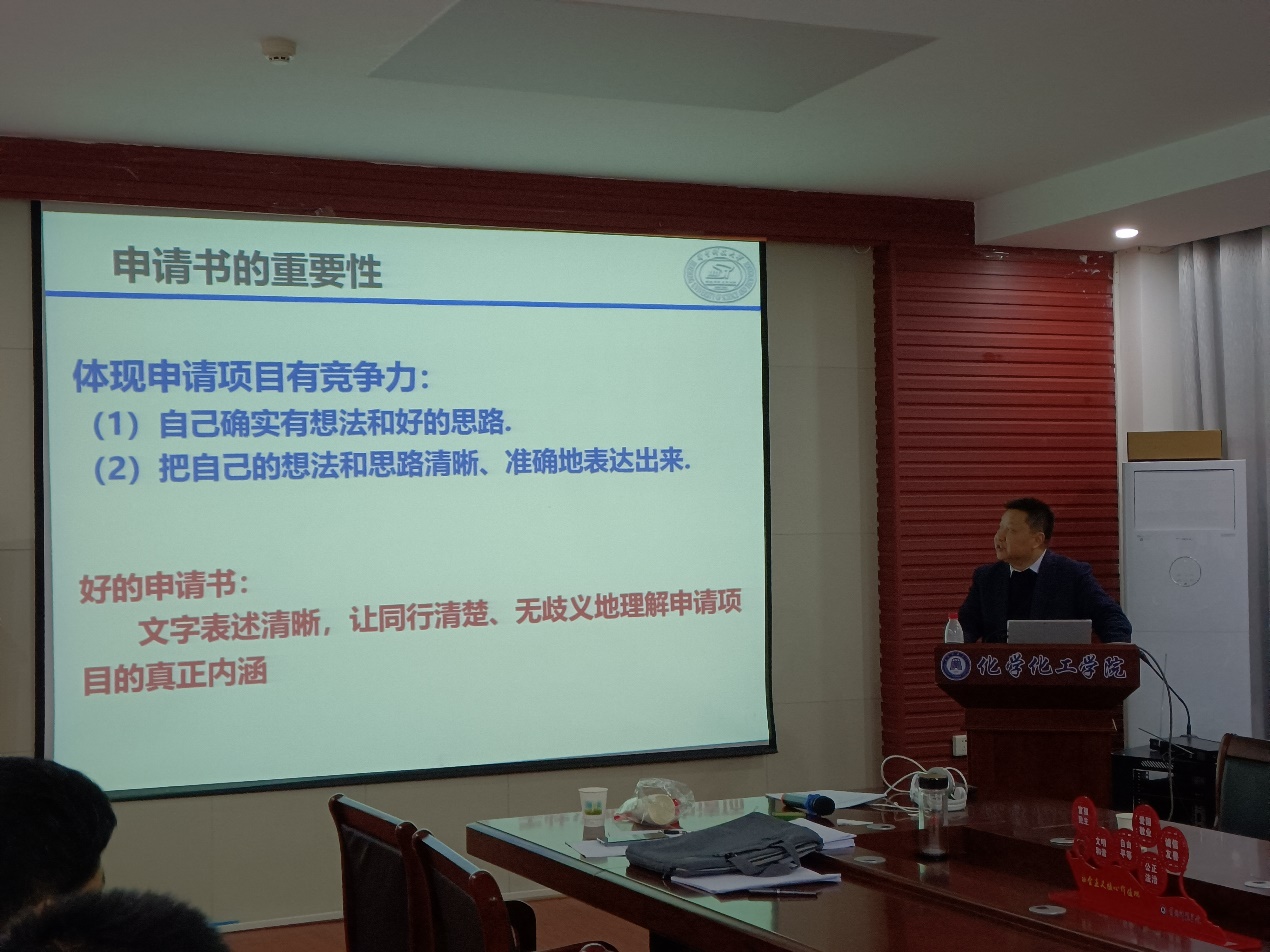 12月7日,华中科技大学谭必恩教授应公司邀请在化学楼407会议室做了题为“国家自科基金选题及申报注意事项”的学术报告,报告会由williamhill中文官网经理田正芳主持,williamhill中文官网全体教师参加了报告会。