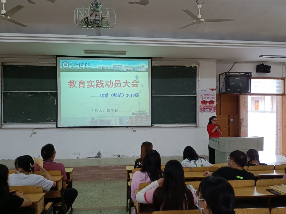 为加强化学(师范)专业的人才培养,进一步做好师范生的教育实习工作,确保2022年教育实习工作的顺利开展。公司于2022年8月31日下午在博学楼A01召开2022年度秋季教育实习动员大会。会议由副经理蒋小春主持,副经理龙涛、化学系主任陈砚美及全体19级化学系员工参与了此次会议。