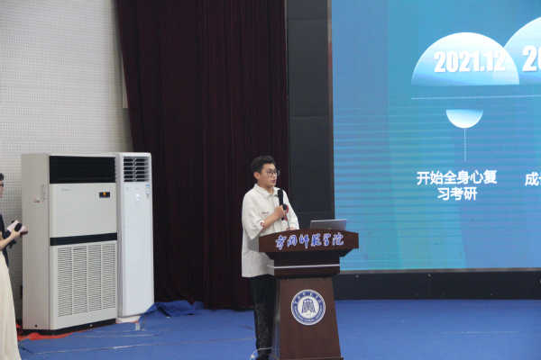 会议第一项,吴琴、林艳、许锦铧、陈英、黄纪超5位优秀考研学子上台分享了各自成功的考研经验和感悟。他们分别从复习计划、公共课复习技巧,网课视频,专业课复习、英语阅读讲述了自己的备考经验,同学们都纷纷记下学长学姐们的推荐。同时,优秀考研学子们还强调复习时的时间、节奏、心态非常重要,他们为备战考研的同学们提出了好的建议,认为只要坚持自己,相信自己就一定可以上岸成功,鼓励公司下届员工在未来备战考研的日子里能够不断地战胜自己,最终达到理想的彼岸。除此之外,两位分别来自武汉理工大学和华中农业大学的学姐还给发来了视频,分享了读研的生活,并祝福公司员工考研成功。
