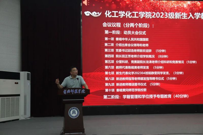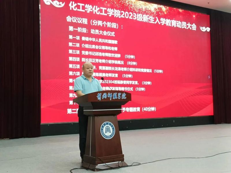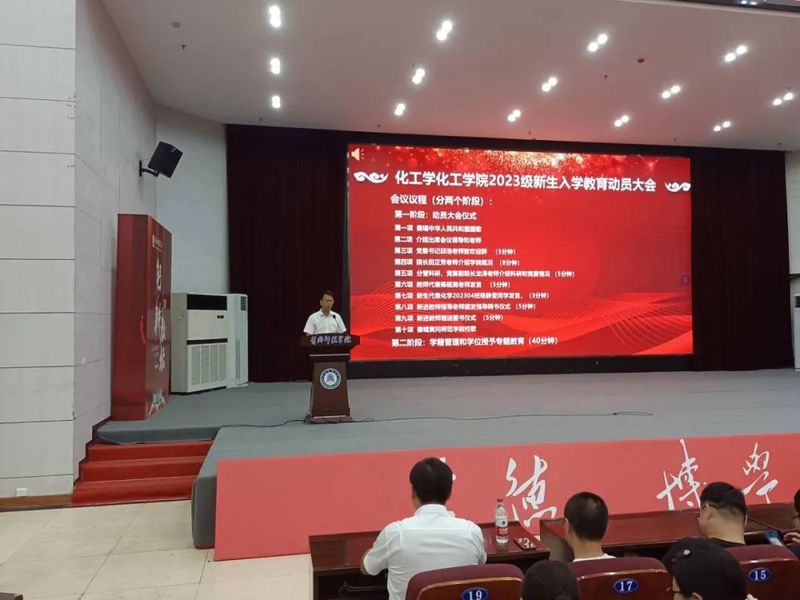 2023年9月11日,williamhill中文官网2023级新生入学教育动员大会在南区学术交流中心举行。公司党委书记邱浩、经理田正芳、公司党委副书记龙刚、副经理龙涛、蒋小春,公司办公室主任、各专业负责人和教研室主任、教学秘书、科研秘书、辅导员、新生班主任、新进教师、新进教师指导老师以及到校2023级本科生和研究生出席本次大会。大会由公司党委副书记龙刚主持。