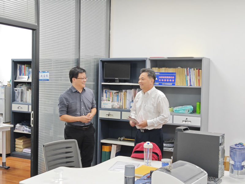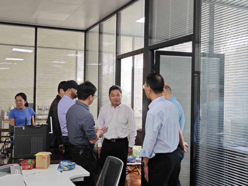 陈向军一行参观了赵国伟的实验室,并与其团队进行亲切交谈,赵国伟围绕着实验室建设进展、团队发展、成果转化等方面进行了介绍。陈向军充分肯定了赵国伟及其团队近年来对公司所做的突出贡献,希望再接再厉,取得更多创新成果,实现更多科研成果转化,切实推动“校、地、企”产学研深度融合。