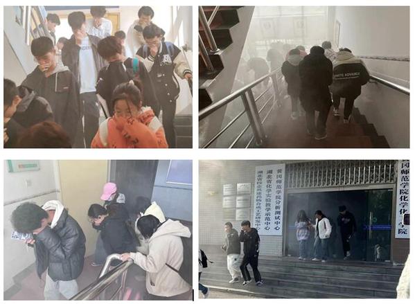 中午12点30分,随着警报声响起,化工楼内浓烟弥漫,参与演练的同学们按照平时上课和日常教育的有关要求,紧紧捂住口鼻,依次弯腰迅速地从化工楼各楼层的教室和实验室撤离,疏散到化工楼外一楼空旷处,整个过程中响应及时、井然有序。