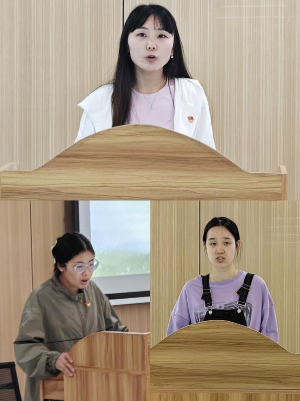 会议第二项,研究生党支部肖赛锦、员工第一党支部武思彤及员工第二党支部蔡紫林分别发言。她们情真意切地表达了自己对于革命先烈的敬仰、追思与哀悼,强调党的历史是一部浴血奋战史,革命前辈面对敌人的威逼利诱,立场坚定,靠的正是坚定的共产主义信念,并表示我们应意识到新时代青年振兴中华责任之重大,兴我民族使命之神圣,用实际行动缅怀先烈、建设美好家园,用知识武装自己、振兴中华,用自己的能力建设绿色家园,涵养个人品德,传承民族精神。