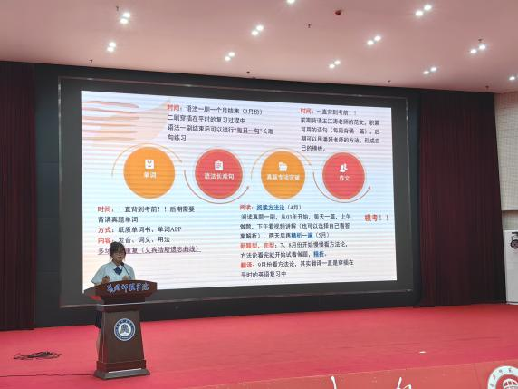 会议第一项,李辛妹、路威、陶茜、杨雪莉、金巧5位考研上岸的优秀学子上台分享了各自成功的考研经验和感悟。她们从考研的心路历程、备考策略、科目复习方法等多个方面进行了深入浅出的讲解。她们以自身情况为依据,结合当前考研形势加入自己的思考,多角度、有重点,各有侧重,鼓励正在备考的学弟学妹们稳住心态。她们的分享让在座的员工受益匪浅,纷纷表示将认真借鉴学长学姐的经验,为自己的考研之路做好充分的准备。