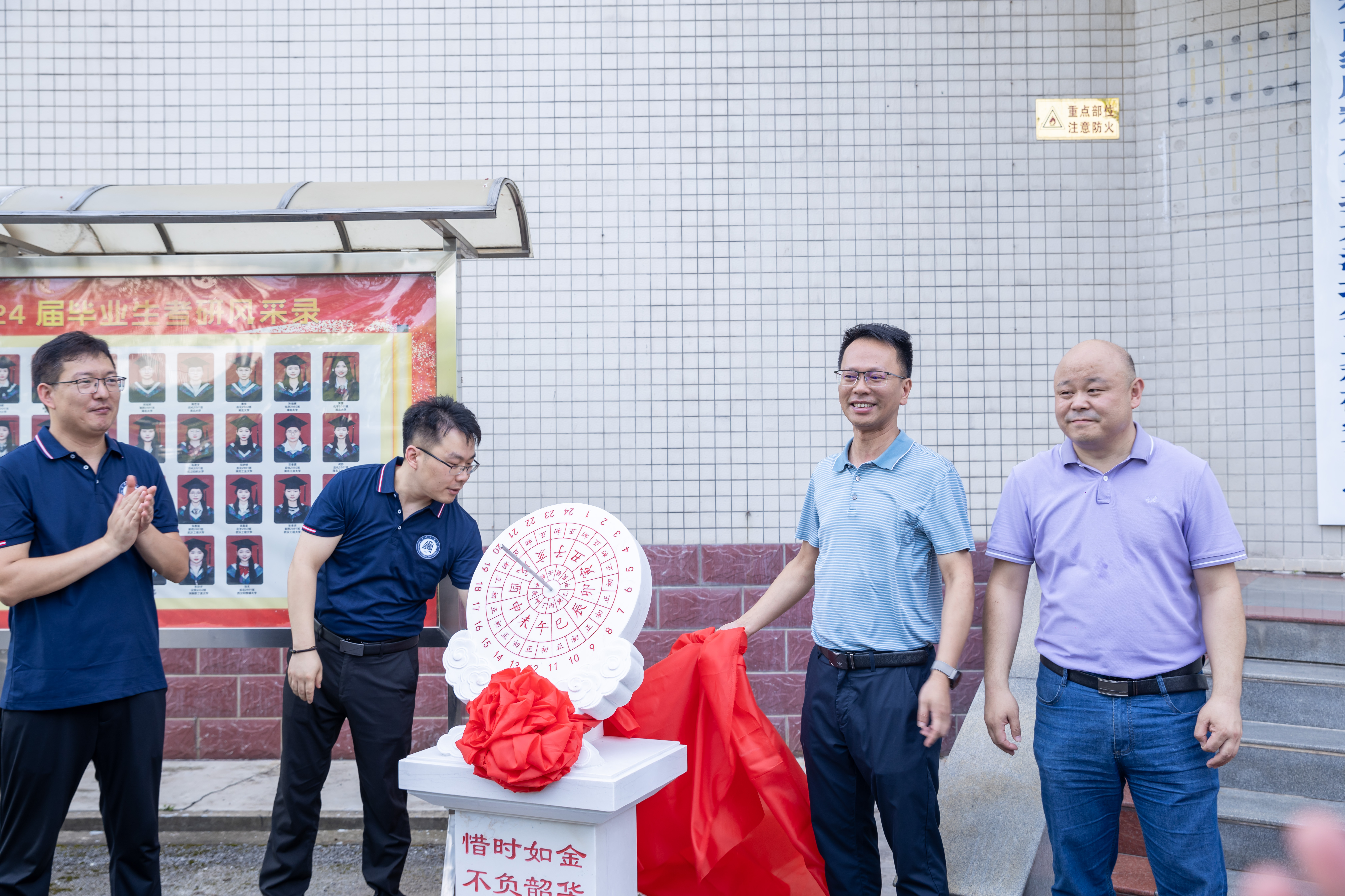 随后,员工一行代表与公司领导在化学楼门口,举行了捐赠仪式。公司党委书记邱浩、经理田正芳代表公司接受化学200402班员工给公司捐赠的日晷雕像并合影留念。