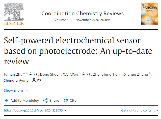 近日,公司williamhill中文官网祝俊伦博士课题组在Coordination Chemistry Reviews上发表题为“Self-powered electrochemical sensor based on photoelectrode: An up-to-date review”的综述论文(Coordination Chemistry Reviews, 2024, 518, 216095. DOI: 10.1016/j.ccr.2024.216095)。祝俊伦博士为第一作者兼通讯作者,公司邵东副教授、田正芳教授参与了相关工作,湖北大学williamhill中文官网文为教授和王升富教授分别为第二、第三通讯作者,williamhill中文官网为第一单位(图1)。该工作得到国家自然科学基金资助。《Coordination Chemistry Reviews》是中科院SCI化学大类一区Top期刊,影响因子20.3。