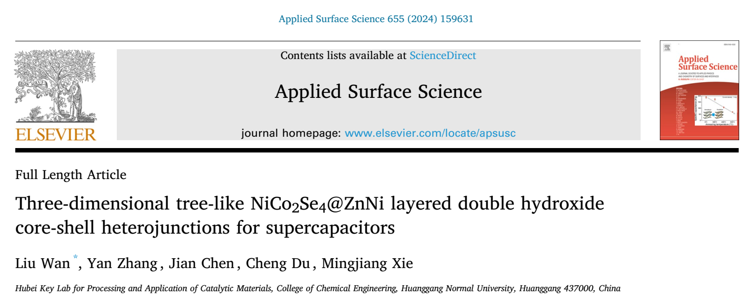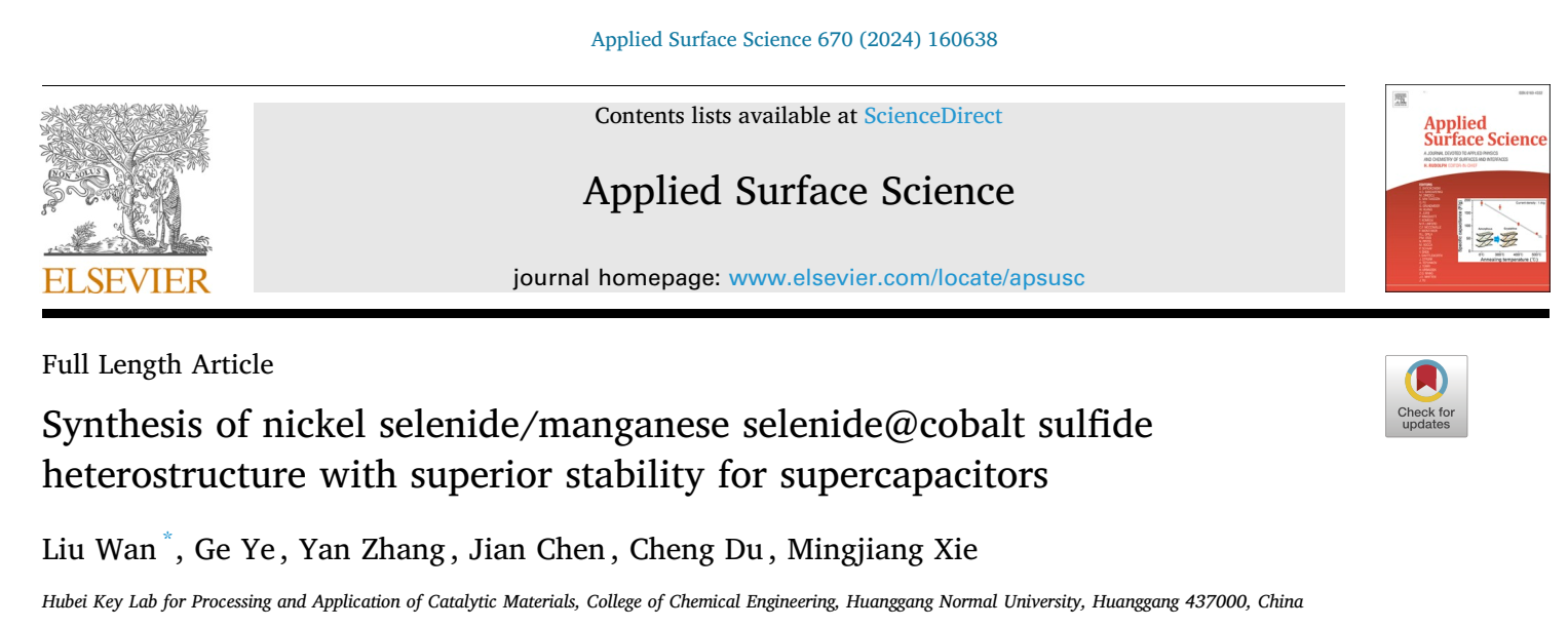 公司校级科研团队炭基能源材料团队,在期刊《Applied Surface Science》连续发表两篇最新研究成果“Synthesis of nickel selenide manganese selenide@cobalt sulfide heterostructure with superior stability for supercapacitors”和“Three-dimensional tree-like NiCo2Se4@ZnNi layered double hydroxide core-shell heterojunctions for supercapacitors”。williamhill中文官网为论文唯一通讯单位,公司本科生叶格(化工2020级)、张燕博士、陈建博士、杜成博士和解明江教授参与了研究工作,万柳博士为论文第一作者。《Applied Surface Science》是由Elsevier集团出版的材料界面领域的国际重要学术刊物,位列中国科协高质量科技期刊分级目录中材料表面与界面领域的T1级,同时为SCI中科院分区TOP期刊。