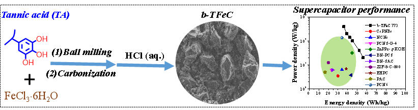 Mechanochemically coordinating Fe-tannic acid towards the fabrication of highly-microporous carbon as advanced supercapacitor electrode