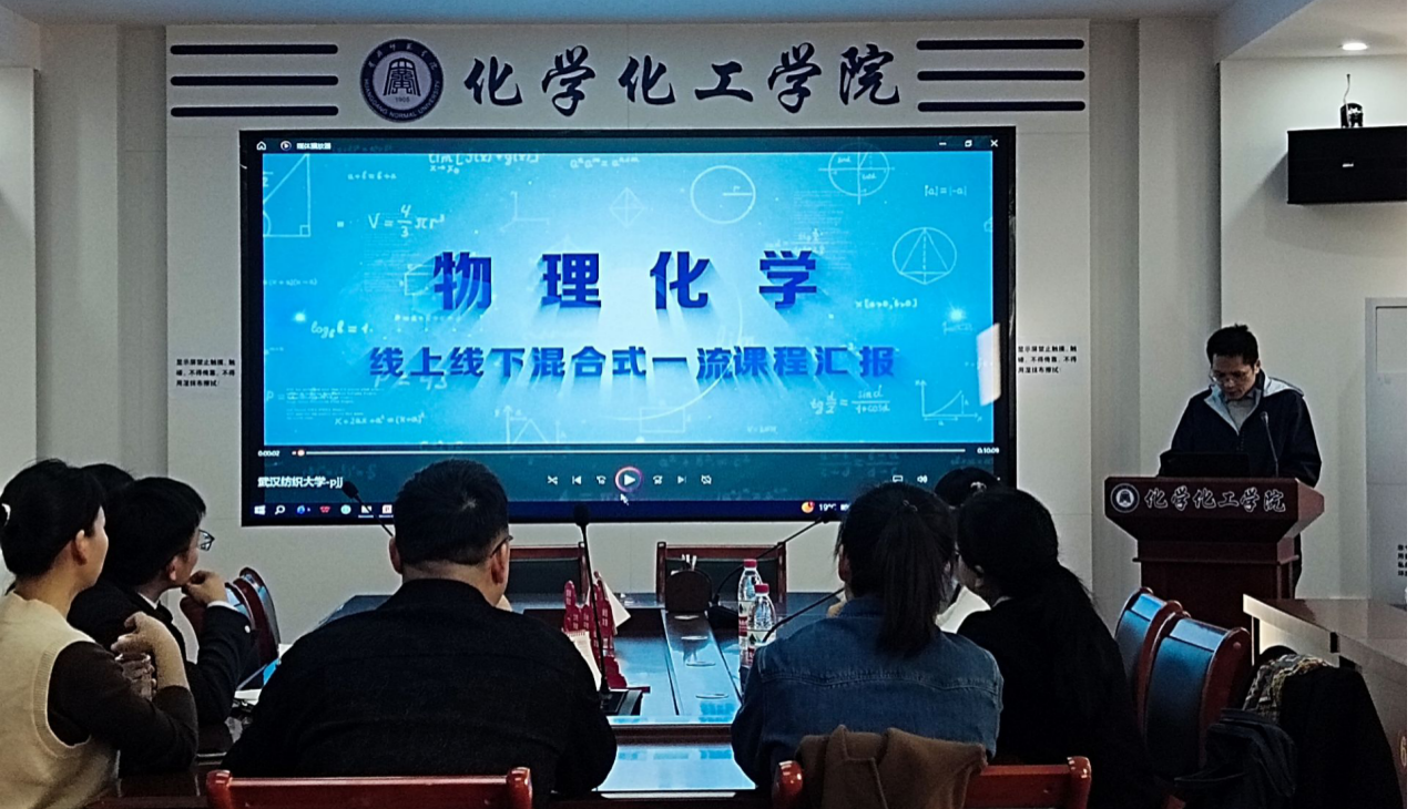 彭俊军教授从课程概述、课程设计、教学举措、创新成果与特色四个方面详细介绍了省级线上线下混合式一流课程——《物理化学》的建设情况,并分享了在教学科研工作上一路成长的心路历程,鼓励青年教师积极将科学研究成果融入教学,做到科教融汇,培养员工创新能力。