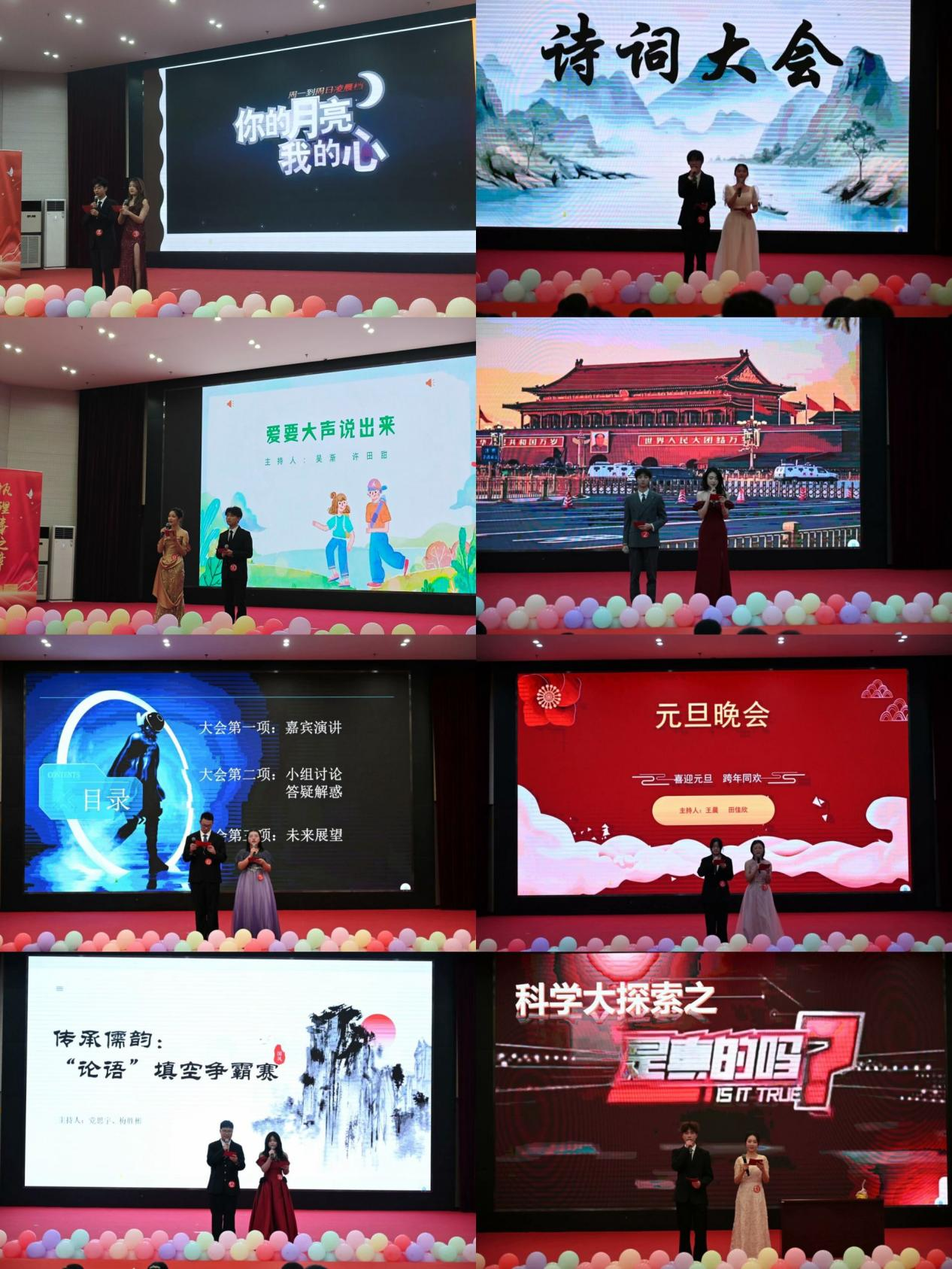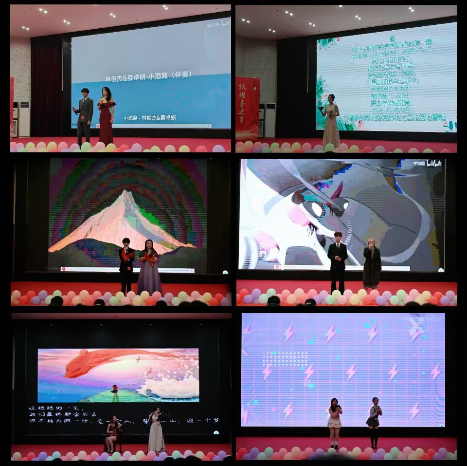 比赛第四环节才艺展示。由刘欣格和魏子懿同学带来的合唱展现青春的美好;彭凌云同学单人趣味绕口令伴随强烈的节奏感,历史与现代结合让我们一同了解古诗词的魅力;许田甜和党思宇同学带来的合舞婀娜多姿,瞬间点燃全场;吴渐和何熏同学的歌曲《follow》唱出了少年意气,尽显青春风采;梅胜彬和蔡佳奇同学的相声表演趣味横生,逗得全场观众捧腹大笑;王晨和田佳欣同学的配音惟妙惟肖,引人入胜;何张迈和杨露同学的朗诵感情饱满,鼓舞同学们勇敢出发;范诗毅同学表演的魔术精彩绝伦,让观众感到无尽惊奇和兴奋;成芷萱与李易婷乐器合奏让人如痴如醉,沉迷于音乐的天堂,简直是听觉的盛宴;张程与程乐同学一首《指纹》勾勒出命运交错的画卷。大赛现场气氛热烈,选手表现精彩纷呈,台下观众们如痴如醉,被现场的选手才艺所折服,掌声此起彼伏。