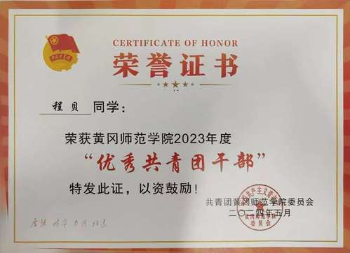 在学术上,程贝始终以勤奋和严谨为座右铭。2023-2024学年,她取得班级成绩第四、综测第一的佳绩,展现了扎实的专业功底。并且她顺利通过英语四六级考试,考取计算机一、二级证书、普通话证书及高中化学教团队格证,并已收到研究生拟录取通知,即将踏上更高的学术征程。