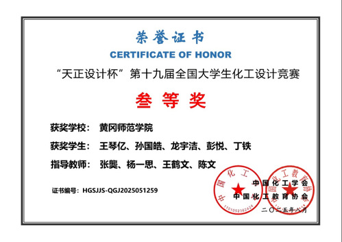 2025年8月11-17日,中国化工学会、中国化工教育协会主办,天津大学承办的“天正设计杯”第十九届全国老员工化工设计竞赛在天津圆满举行。全国共有479所高校的4337支队伍报名参加,参赛人数首次超2万人,参赛公司和报名队伍数量再创历史新高。公司williamhill中文官网组建多支队伍报名参赛,最终意气砜发团队(成员:王琴亿、孙国皓、龙宇洁、彭悦、丁铁)在张龑、杨一思、王鹤文、陈文四位老师的指导下荣获华中赛区二等奖、全国三等奖的佳绩,为公司和公司再添荣誉。